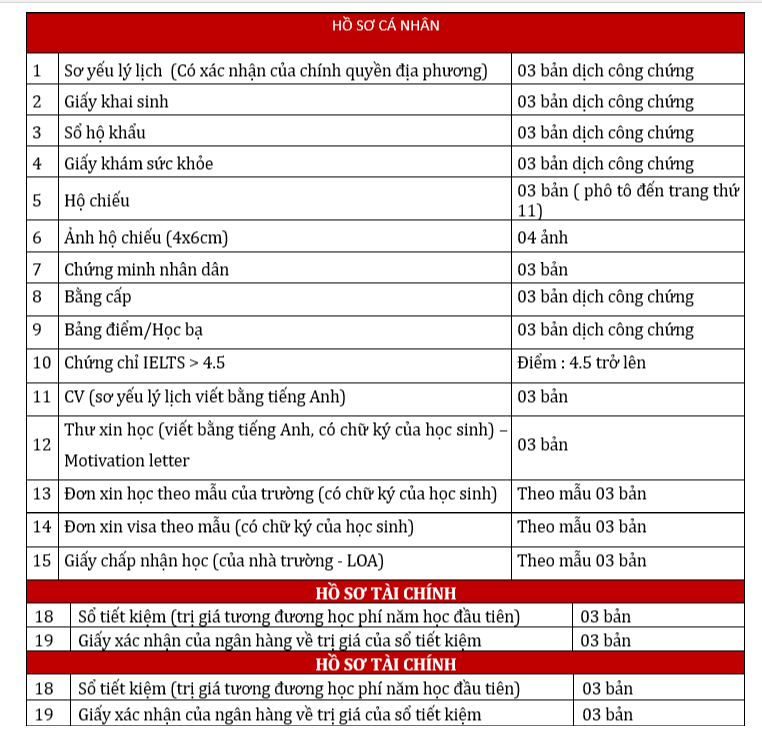 *** Hồ sơ phải dịch thuật sang tiếng Anh, Đức hoặc Ý